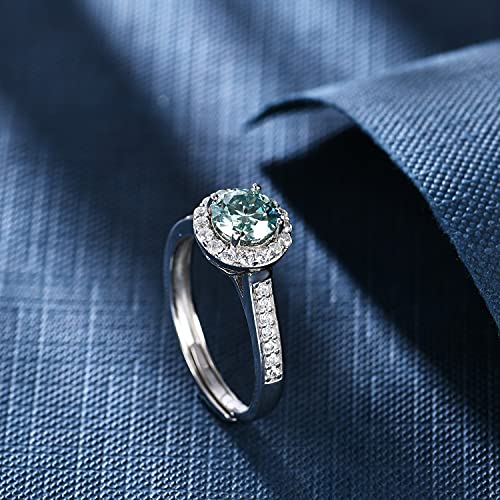 Gem's Beauty Green Moissanite Adjustable Rings 925 Sterling Silver Open Ring 1.0Ct Round Halo Green Moissanite Solitaire Engagement Ring For Women