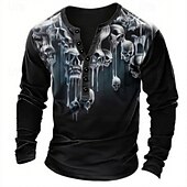 More information about Men's Halloween Graphic Skull T Shirt Henley Shirt Tee Long Sleeve Vintage Designer contemporary Outdoor Halloween Casual Fall Winter Spring & Summer Black Blue Henley Henley T-Shirt