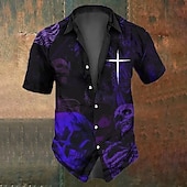 trending ! Halloween Men's Cross Halloween Costumes Skulls Shirt Button Up Shirt Short Sleeve Dark Gothic Style Holiday Summer Spring Turndown 3D Print Collared Shirts Black Purple