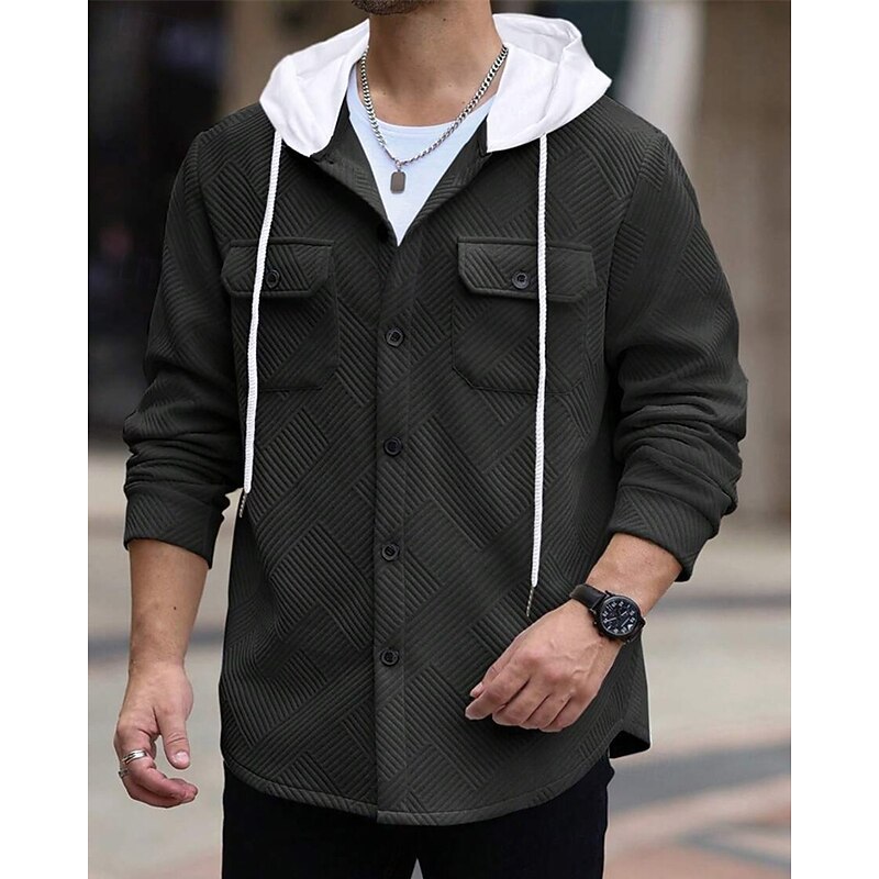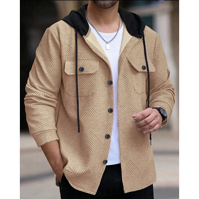 This Men's Lightweight Jacket Casual Jacket Vacation Daily Breathable Pocket Spring Fall Plain Jacquard Fashion vintage Hooded Regular Black White Navy Blue Khaki Jacket combines elegant design with practical functionality. Every detail has been carefully considered to ensure you get the best possible experience. The first-class construction means this product will serve you well for years to come.