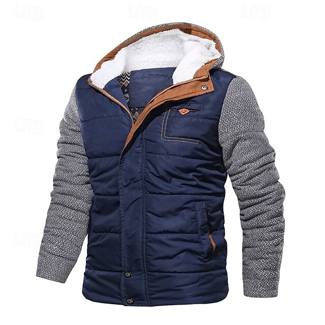 Why Choose Men's Winter Jacket Fleece Jacket Casual Jacket Vacation Daily Thermal thermal Pocket Fleece Fall Winter Color Block Fashion Streetwear Hooded Regular Black Blue Jacket?