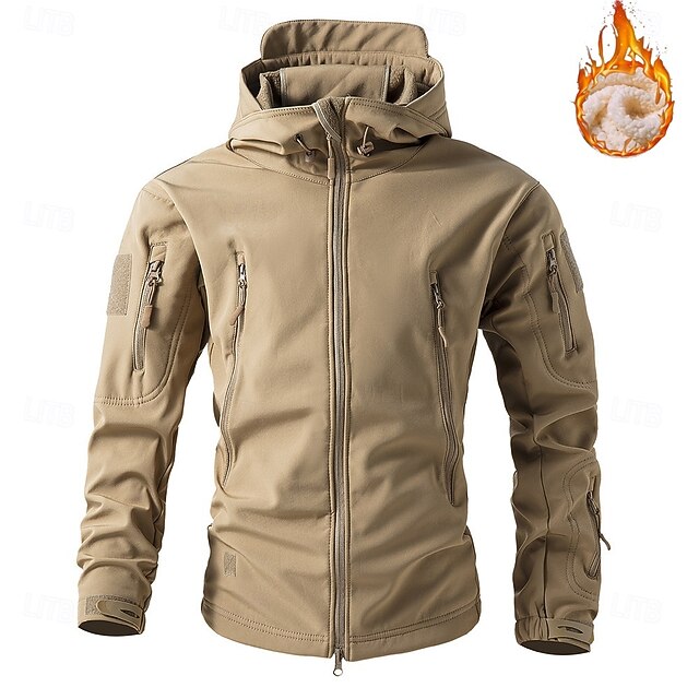 Highlights [Fabric] : Crafted from a high-quality synthetic blend, this men's outdoor jacket ensures durability and reliable water resistance. The fabric is designed to provide excellent protection against wind and rain, making it ideal for unpredictable weather conditions. [Fit] : The jacket features a tailored fit that combines both comfort and style, suitable for a diverse range of activities. Its sleek design compliments a variety of body types and ensures ease of movement. [Design Highlights] : This jacket boasts a tactical design with multiple zippered pockets on the chest and sleeves, offering convenient storage for essentials. The full front zipper ensures easy closure, while the adjustable cuffs allow for a personalized fit. The inclusion of a hood provides additional protection against the elements, enhancing the jacket's practicality for outdoor adventures. [Occasions] : ideal for a multitude of outdoor activities, from hiking and tactical exercises to casual outings in rugged environments. Its neutral khaki color adds versatility, making it a valuable addition to any wardrobe. [Size Range] : Available in sizes M, L, XL, XXL, 3XL, and 4XL, this jacket accommodates a wide range of body shapes, ensuring an ideal fit for most individuals seeking functional outdoor wear. Perfect for everyday use. first-class materials and excellent craftsmanship ensure long-lasting durability.
