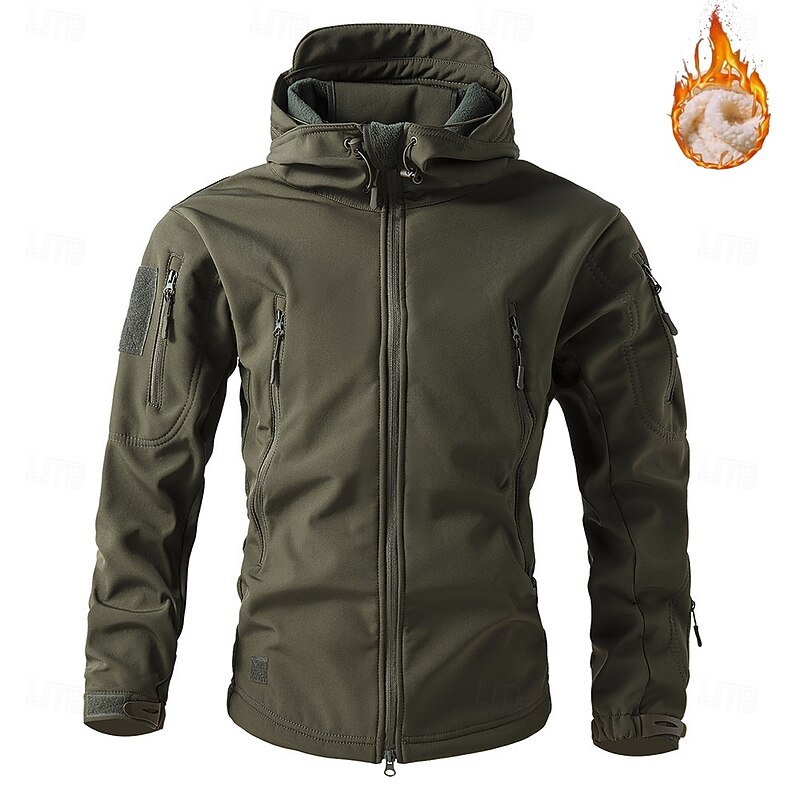 Men's Outdoor Jacket Hiking Jacket Tactical Jacket Outdoor Rain Waterproof Windbreaker Fleece Winter Autumn / Fall Solid Color Tropical Tactical Regular Black Green Khaki Dark Grey Jacket
