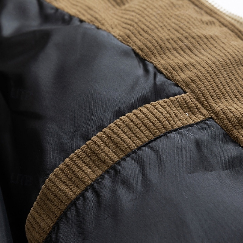 This Men's Corduroy Puffer Jacket Padded Pocket Full Zip Hooded Christmas Outdoor Street Regular Neutral Fashion Daily Winter Solid Color Color Block Black Green Khaki Puffer Jacket combines elegant design with practical functionality. Every detail has been carefully considered to ensure you get the leading possible experience. The finest construction means this product will serve you well for years to come.
