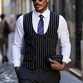 More information about Men's Waistcoat Cocktail Attire Formal Casual Vintage Fashion Spring Spring & Fall Buttons Polyester supple Plain Striped Double Breasted U Neck Slim Fit Black Vest