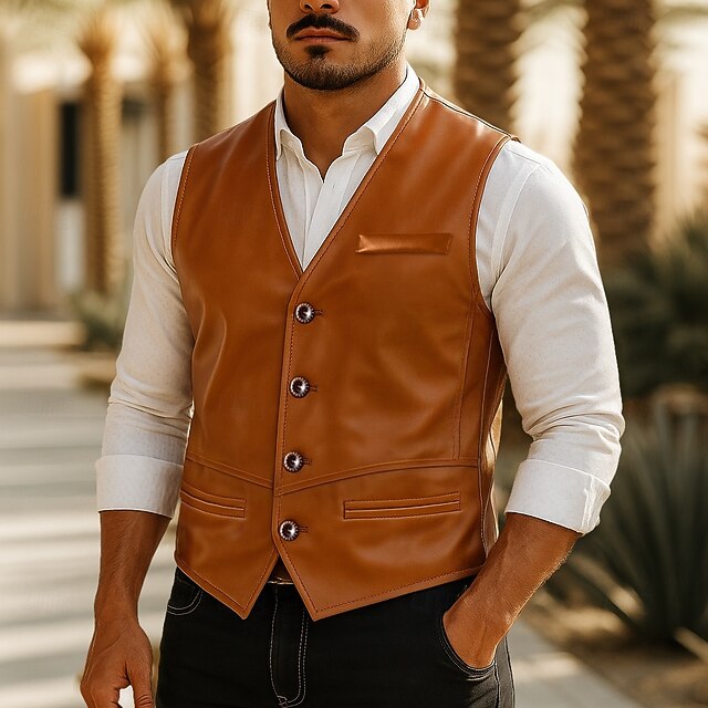 Why Choose Men's Vest Waistcoat Faux Leather Vest Casual Daily Western Style Spring Fall Pocket Buttons Polyester PU Leather gentle Plain Herringbone Single Breasted V Neck Slim Fit Black Brown Vest?