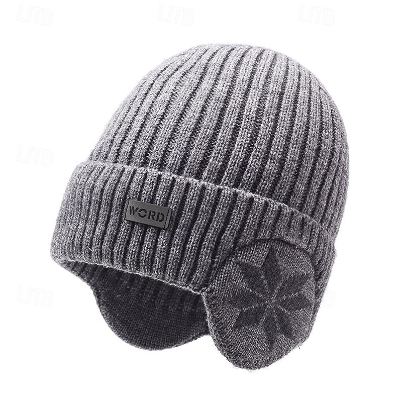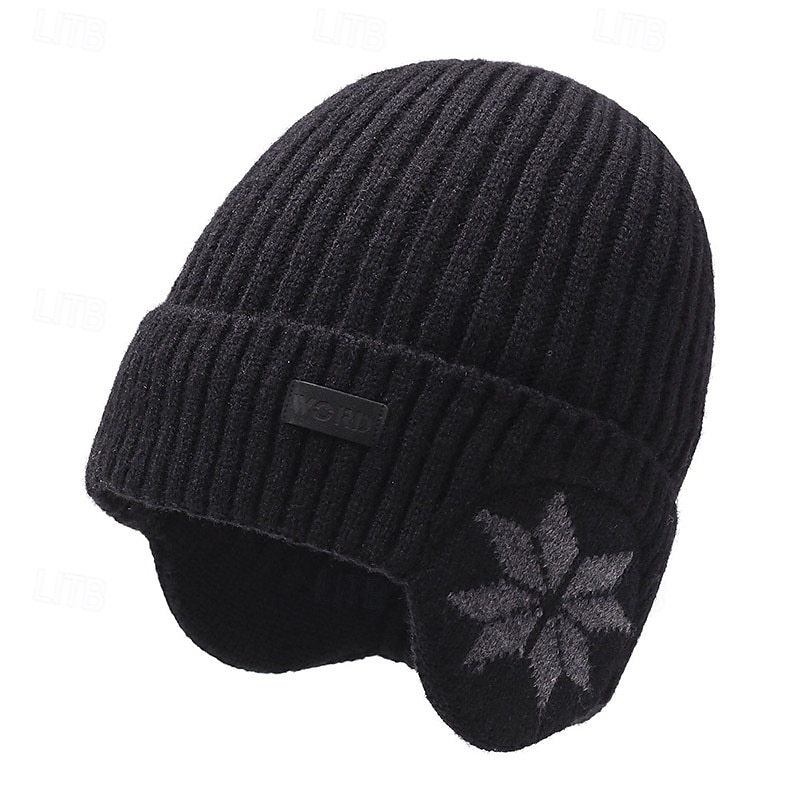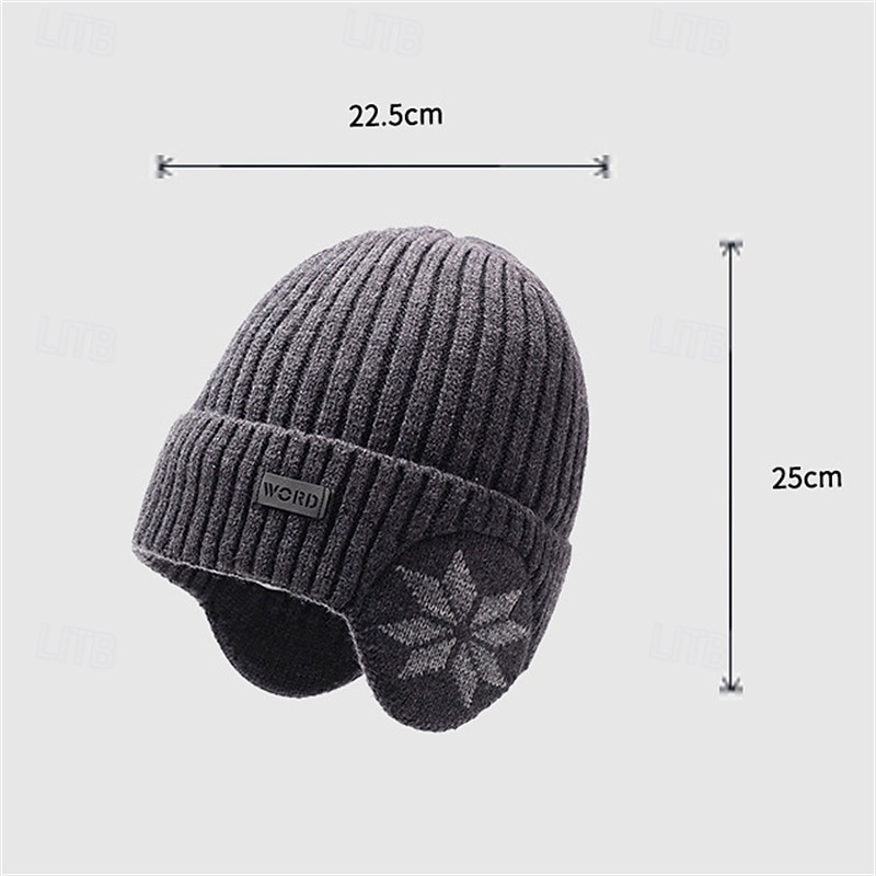 Highlights [Fabric and Material] : Crafted from high-quality polyester, this cozy winter beanie hat offers excellent warmth and comfort. Its knitted construction ensures durability and a snug fit for daily wear. [Fit and Style] : Designed with a versatile and trendy ribbed pattern, this hat offers a unisex fit suitable for both men and women. Its snug fit enhances comfort while maintaining a sophisticated profile. [Design Highlights] : Featuring attached ear flaps adorned with an attractive snowflake pattern, this beanie hat combines functionality and flair. The intricate knit design adds a touch of sophistication and appeal. [Occasions] : Ideal for daily wear and going out, this winter hat is perfect for various outdoor activities during the fall and winter seasons. Its versatility makes it suitable for both casual outings and more active pursuits in cold weather. [Size Information] : Available in one size that comfortably fits most, this winter beanie hat comes in a range of colors including Black, Dark Gray, Gray, Dark Navy, Khaki, and Iron Gray. Perfect for everyday use. first-class materials and excellent craftsmanship ensure long-lasting durability.