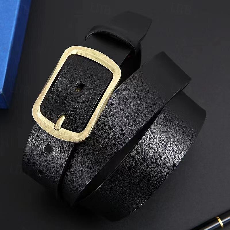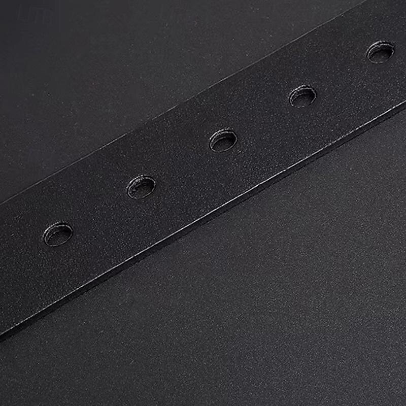 Highlights [Fabric] : This men's belt is crafted from high-quality faux leather and features a sleek and polished finish. The material maintains a durable and flexible quality while providing the luxurious feel of genuine leather. The golden alloy buckle adds a striking contrast, enhancing the belt's overall appearance with a hint of elegance. [Fit & Silhouette] : Designed as a waist belt, this belt includes multiple adjustment holes to ensure a customizable and cushy fit. The traditional silhouette and casual style make it a versatile accessory suitable for both formal and casual occasions. [Design Highlights] : The belt showcases a minimalist design with a plain pattern and a sophisticated golden rectangular buckle. Its classic style is timeless, making it an essential addition to any wardrobe. The buckle's sleek design adds a contemporary touch to the overall aesthetic. [Occasions] : Perfect for daily wear as well as outdoor activities, this belt is highly versatile. It seamlessly complements a variety of outfits, from casual attire to more formal ensembles, making it a perfect addition to any occasion. [Size Range] : Available in a standard one-size option, this belt is designed to fit a wide range of waist sizes thanks to its adjustable features. The multiple adjustment holes provide ample flexibility for a personalized fit.