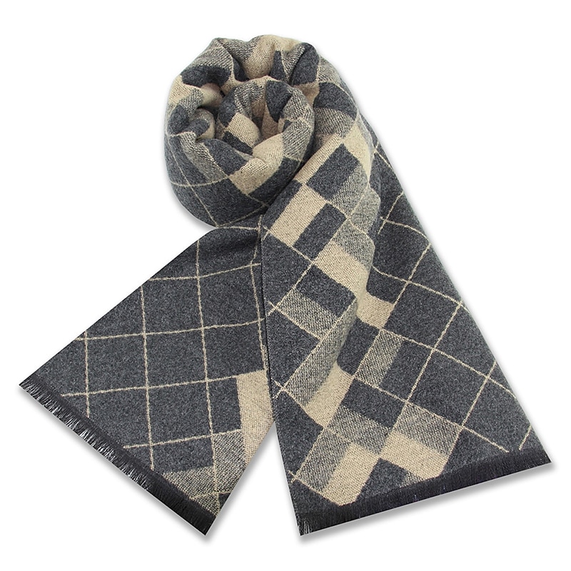 Highlights [Fabric] : Crafted from a luxurious wool blend, this Men's Casual Daily Weekend Scarf offers a soft and warm texture, making it ideal for the colder months of fall and winter. [Pattern] : Designed with a traditional plaid pattern in shades of black and apricot, this scarf brings a timeless and sophisticated element to any ensemble. The traditional rectangular shape accompanied by neatly fringed edges adds a touch of elegance and versatility to its overall design. [Design Highlights] : The scarf features an eye-catching plaid pattern that seamlessly blends contemporary style with classic charm. Its tones of black and apricot provide a sleek contrast, perfect for elevating both casual and formal outfits. [Occasions] : Suitable for a variety of settings, this versatile scarf is perfect for casual daily wear and weekend outings. Its adaptable style complements any wardrobe, making it a must-have accessory for both relaxed and sophisticated occasions. [Size] : Available in a generous one-size length of 175cm, this scarf is designed to offer a comfortable fit for all, enhancing any outfit with its tasteful design and practical warmth.