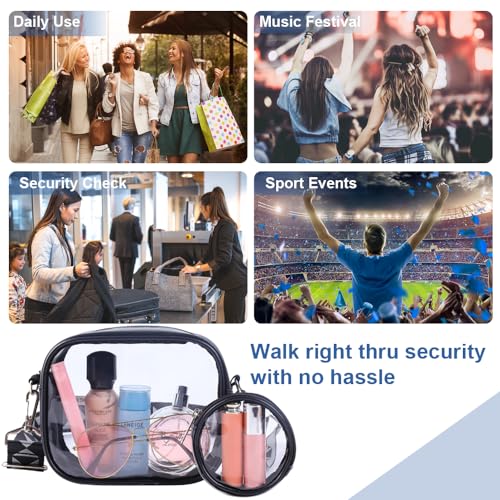 Clearworld Unisex-Adults Clear Crossbody Bag, Black, 7.5"W x 6"H x 2.7"D, Stadium Approved, Adjustable Shoulder Strap