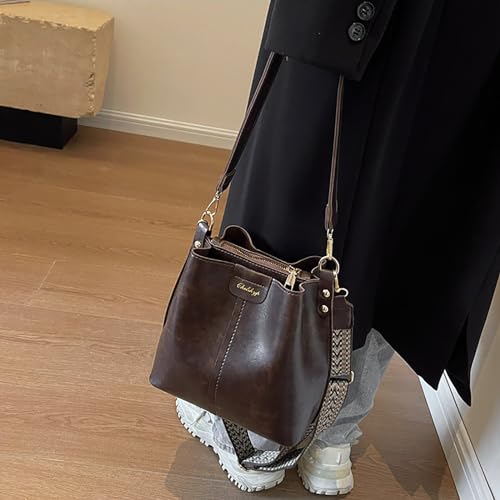 Versatile Vintage Barrel Bag with Wide Shoulder Strap Retro Crossbody Purse for Women