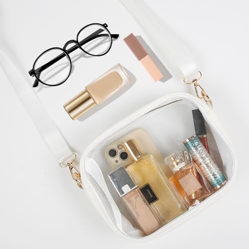 Clear Bag Stadium Approved, Small Clear Purse Crossbody Bag for Women & Men,Transparent Purses for Concerts Sports Events,White