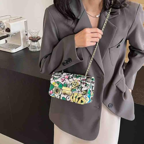 Fabric type: PU leatherOrigin: ImportedClosure type: SnapLining: LeatherMaterial: This chic crossbody bag is made of PU leather fabric.premium hardware, make the crossbody bag more elegant and durable, wear resistance, to ensure long-term use.Close: Metal locks to protect your belongings. The rich texture of the hardware accessories and the chain echo, making this bag stand out, showing a unique temperament.Occasion: The stylish graffiti wallet makes you look unique and young, suitable for everyday leisure occasions such as parties, shopping, travel, vacations, picnics and so on. The color saturation is high, and you can take pictures while out and about to attract others' attention.Close: Metal locks to protect your belongings. The rich texture of the hardware accessories and the chain echo, making this bag stand out, showing a unique temperament.Surprise Gift: The graffiti bag can be shared with family or friends, or given as a birthday gift, holiday gift, anniversary gift to a loved one, daughter, sister, friend, such a cute and practical gift that no one will refuse. Perfect for everyday use. High quality materials and excellent craftsmanship ensure long-lasting durability.