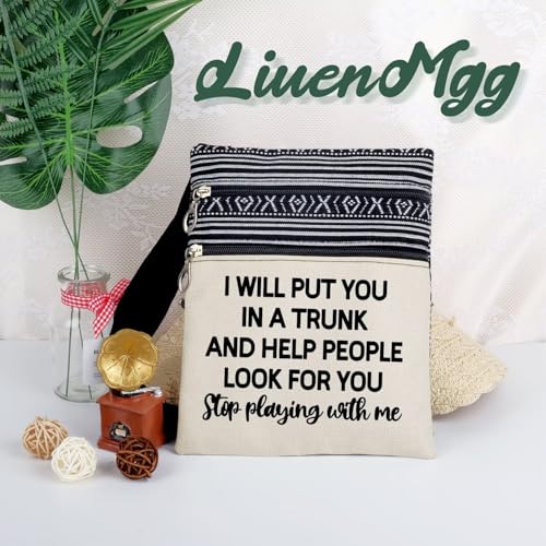 trending ! Put You In A Trunk Funny Messenger Bag Small Ethnic Pattern Printed Adjustable Strap Crossbody Zipper Bag Funny Slogan Phone Bag Wallet Cute Shoulder Handbag for Women