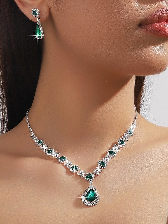$14.99 - Green Teardrop Crystal Jewelry Set - Necklace and Earrings with Rhinestone Accents for Women, Perfect for Weddings and Formal Events 2025. Shop for cheap Women's Necklace online? Buy at lightinthebox.com on sale today!
