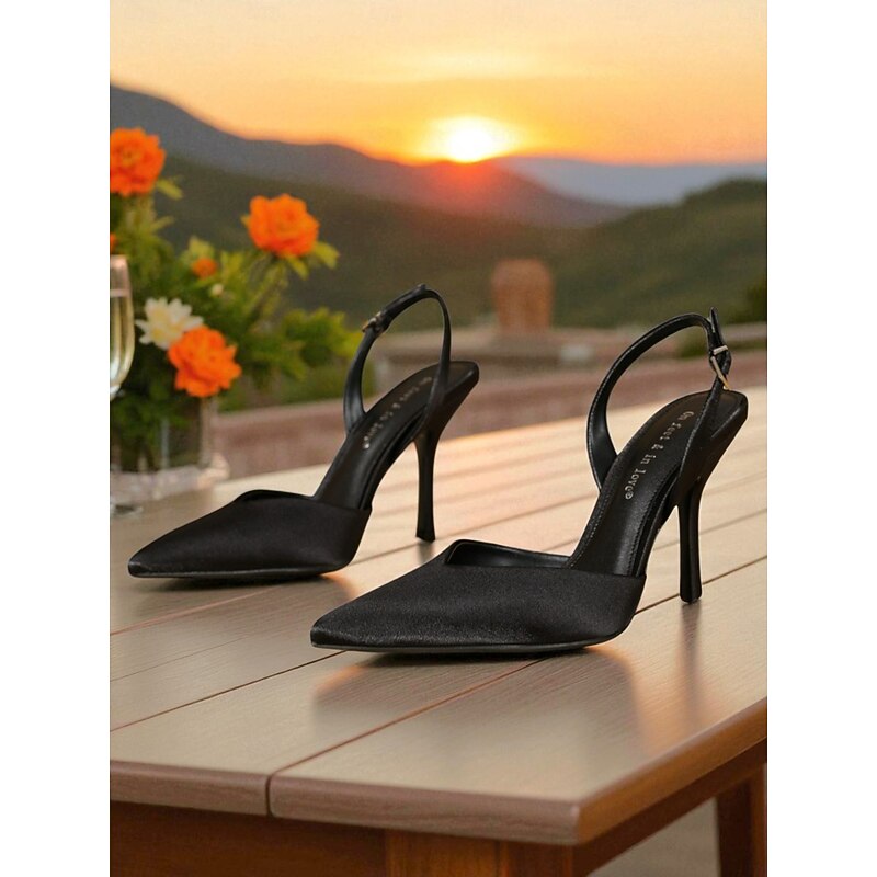 Highlights - Luxurious satin upper materials - Elegant pointed toe shape - Synthetic leather lining for comfort - resilient rubber outsole - A outstanding combination of style and quality