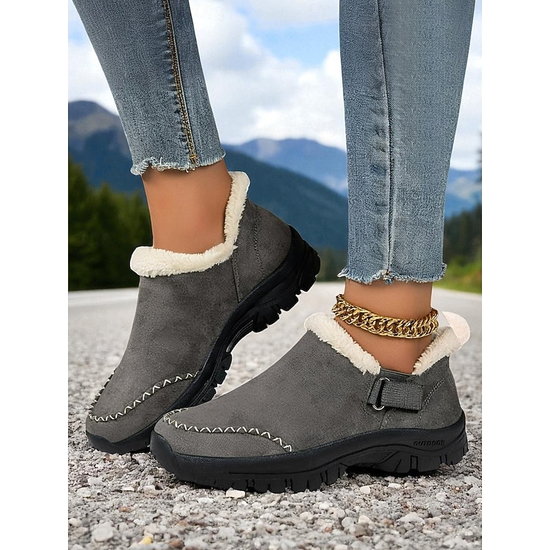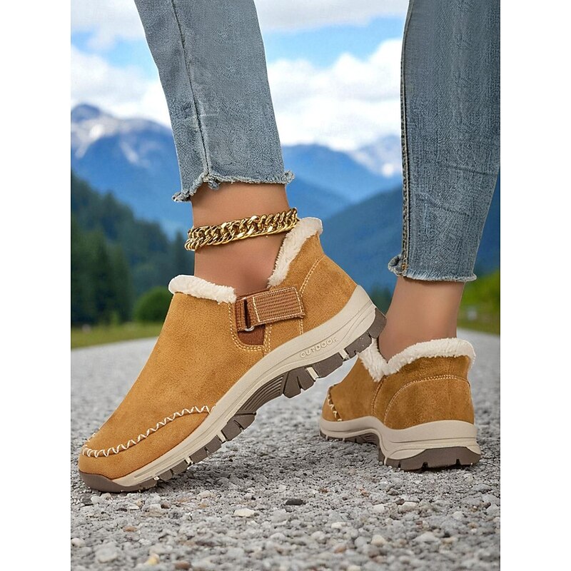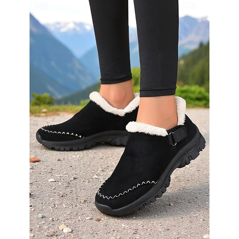 trending ! Women's Fur Lined Slip-On Sneakers, Casual Outdoor Anti-Slip Winter Shoes for Snow and Cold Weather