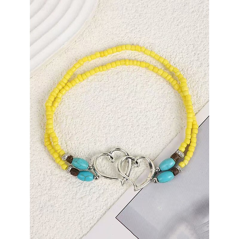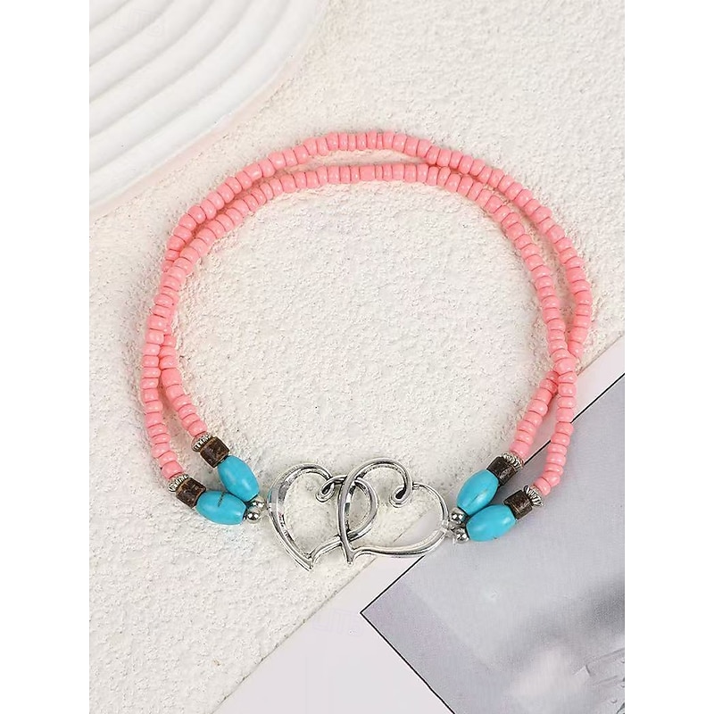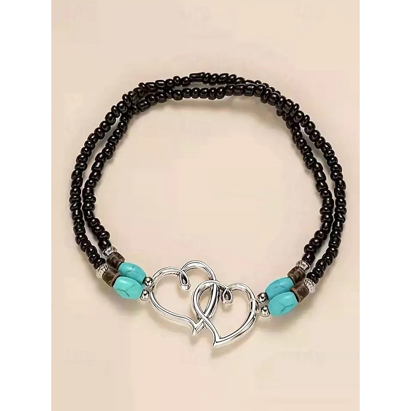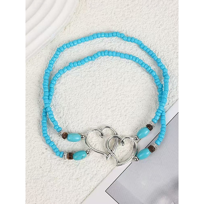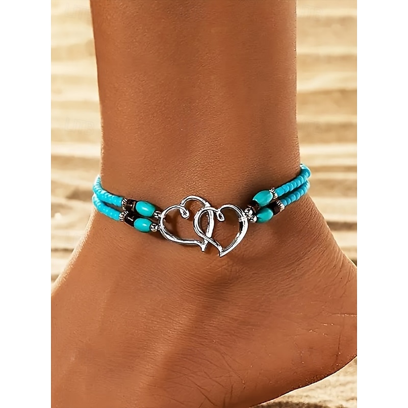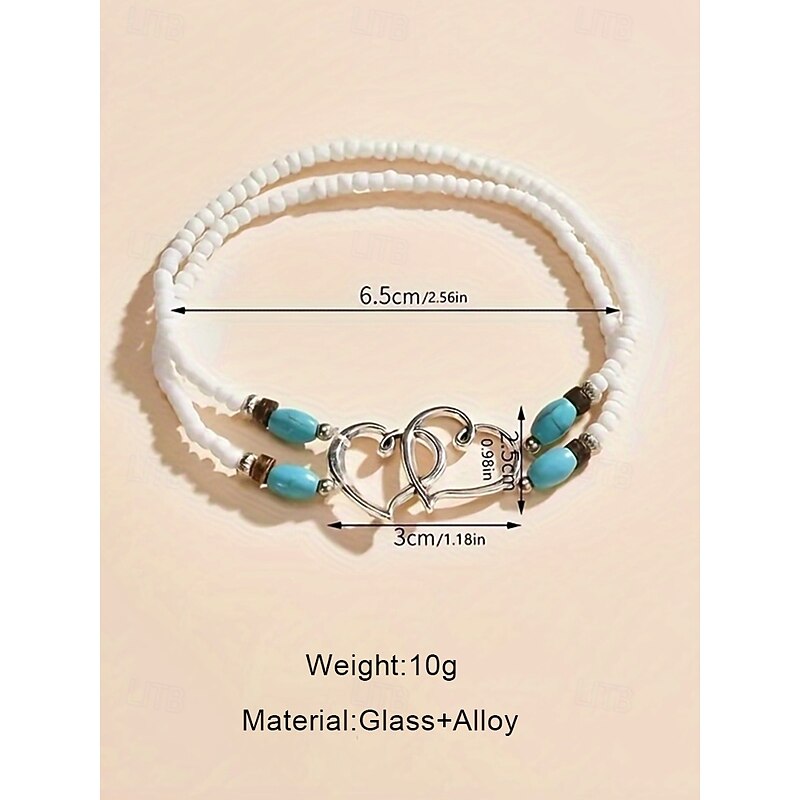 $7.99 - Bohemian Double Heart Beaded Anklet for Women, Handmade Beach Jewelry with Turquoise and White Beads, Perfect for Summer, Vacations and Gifts 2025. Shop for cheap Women's Bracelet online? Buy at lightinthebox.com on sale today!