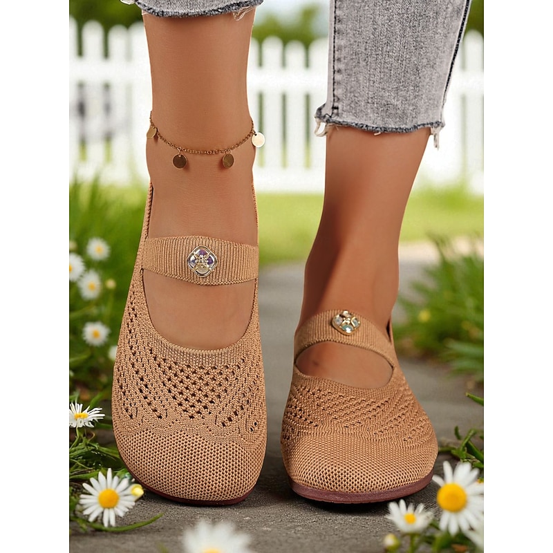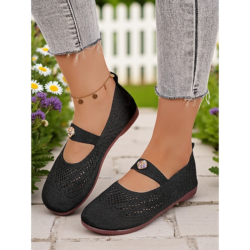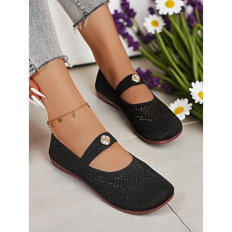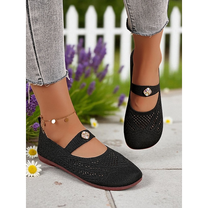 Why Choose Women's Wide Width Flyknit Mary Jane Flats – Breathable Comfort Shoes with Rhinestone Strap for Walking and Daily Wear?