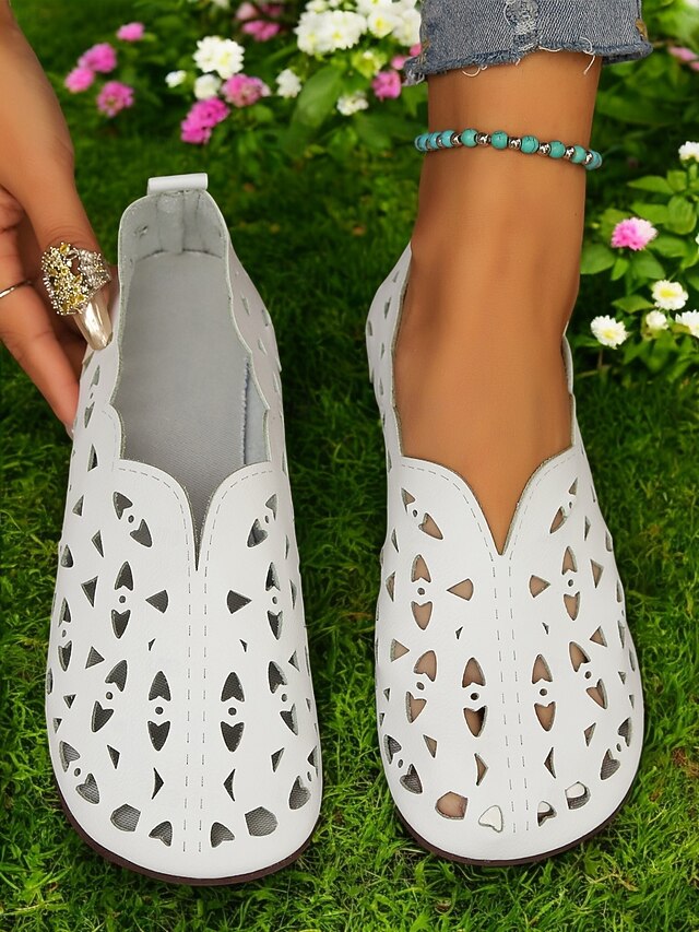 trending ! Women's White Laser-Cut Barefoot Slip-Ons - Breathable and Lightweight Casual Wide Fit Shoes, fabulous for Summer Days