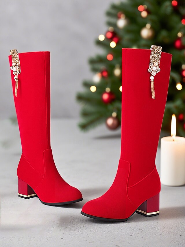 $54.99 - Women's Red Knee-High Boots with Chunky Block Heel and Pearl Tassel Embellishment, Elegant Christmas Party & Holiday Fashion Boots for Winter Outfits 2025. Shop for cheap Women's Christmas Shoes online? Buy at lightinthebox.com on sale today!