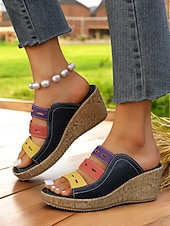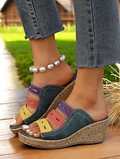 More information about Multi-Colored Wedge Sandals for Women – contemporary Open-Toe Slide Sandals with cushy Platform for Casual Summer Outfits