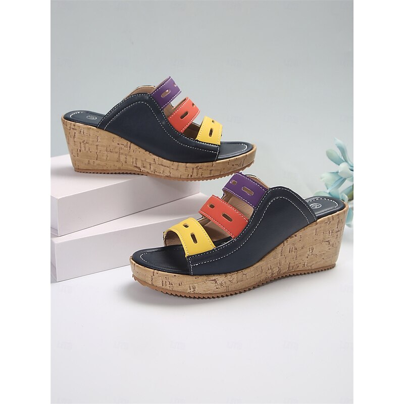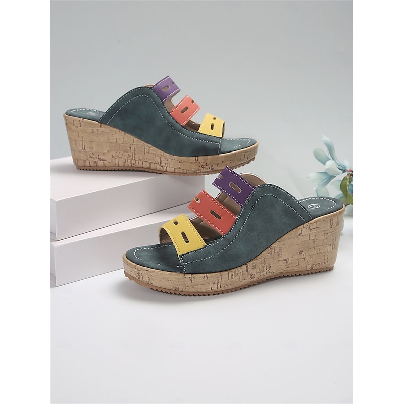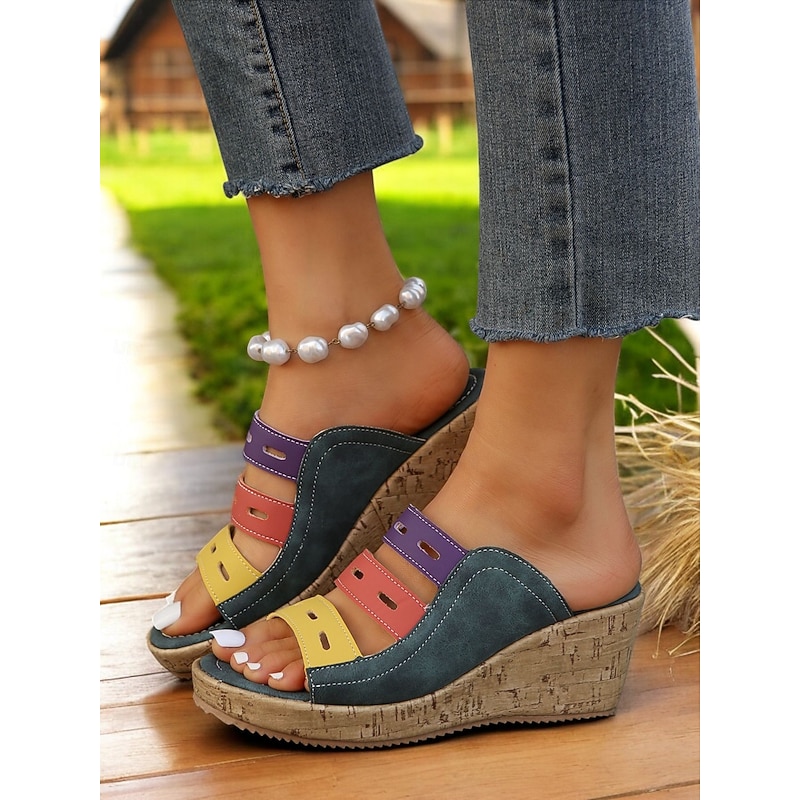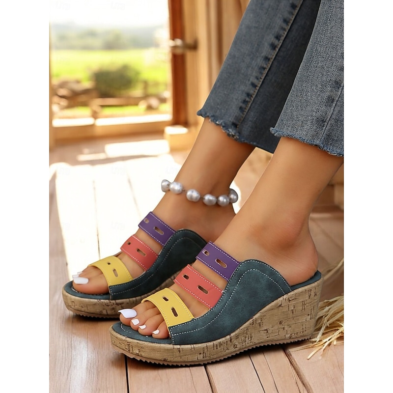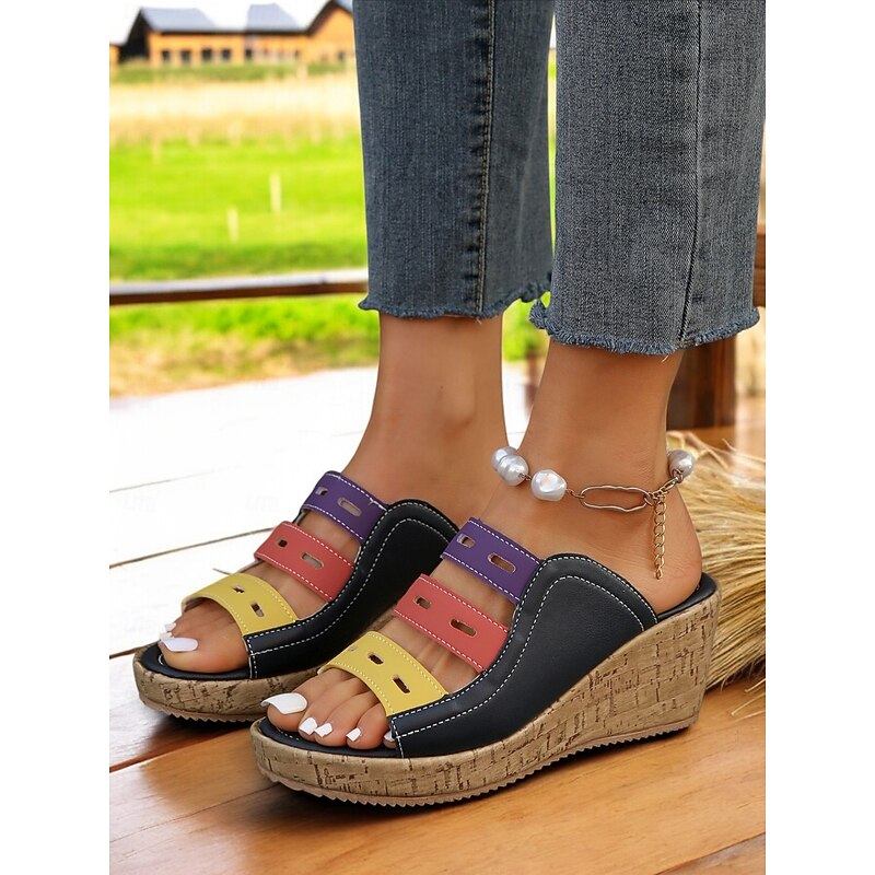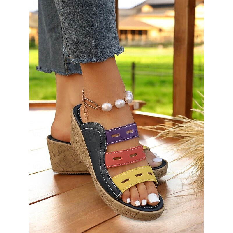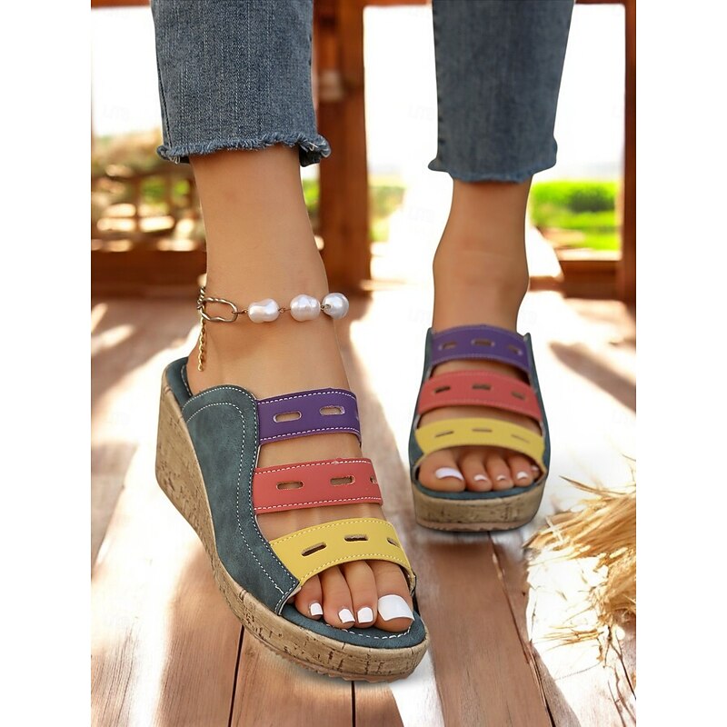 trending ! Multi-Colored Wedge Sandals for Women – latest Open-Toe Slide Sandals with Comfortable Platform for Casual Summer Outfits
