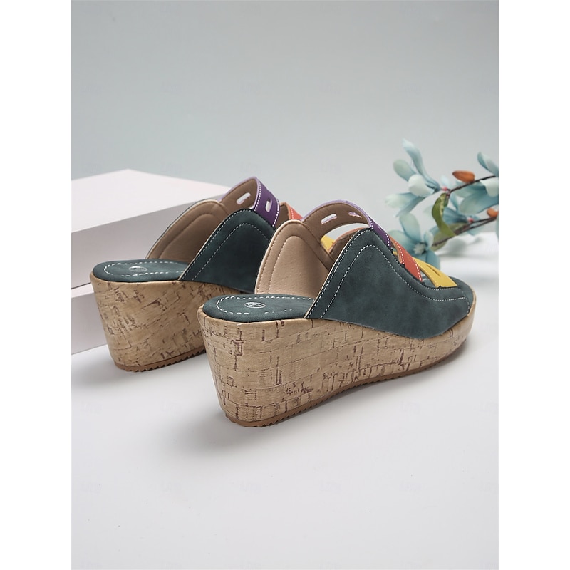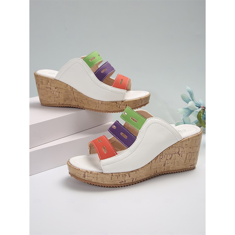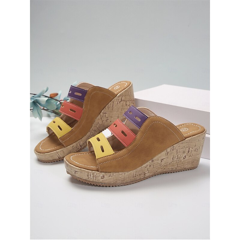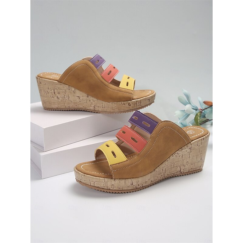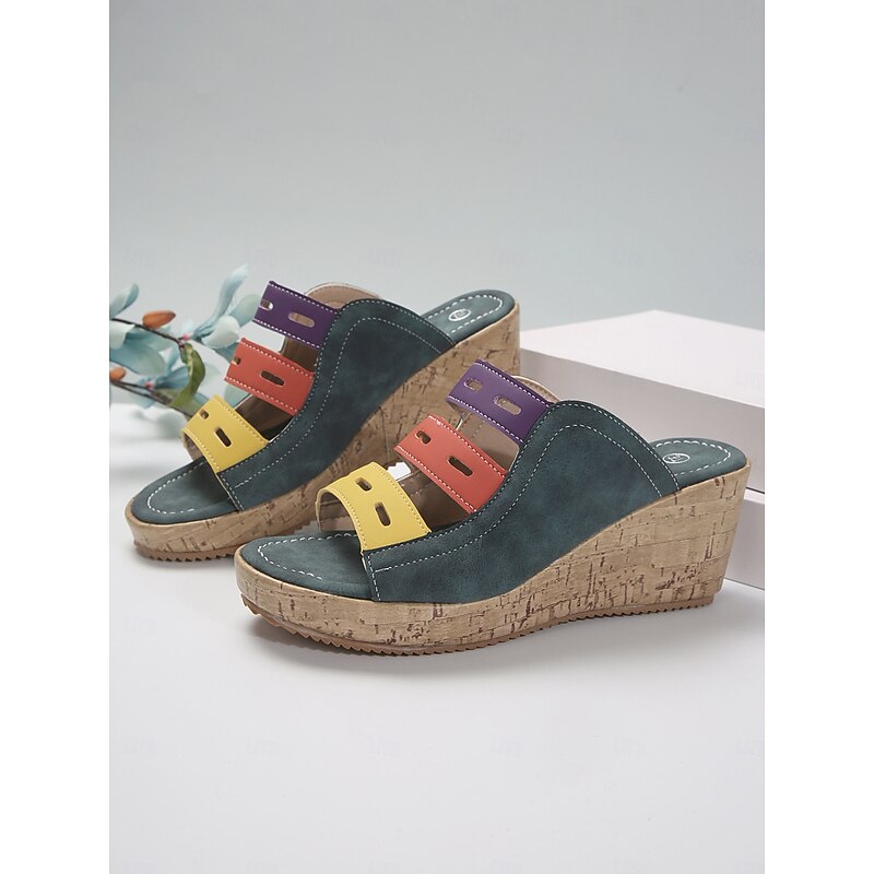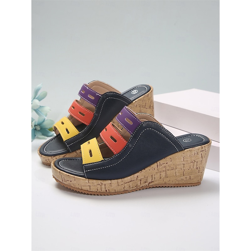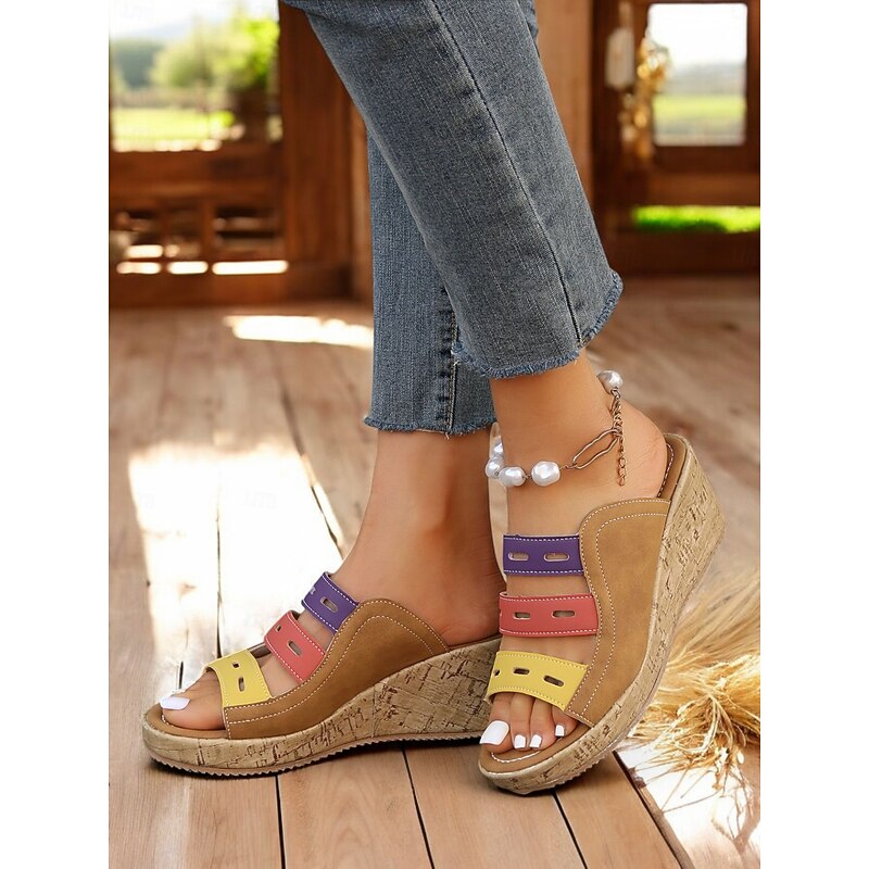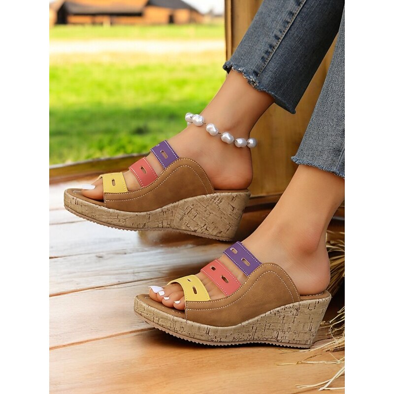 trending ! Multi-Colored Wedge Sandals for Women – latest Open-Toe Slide Sandals with Comfortable Platform for Casual Summer Outfits
