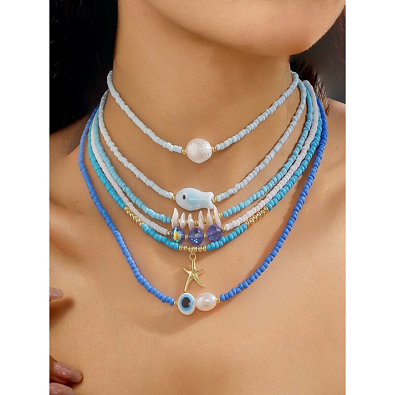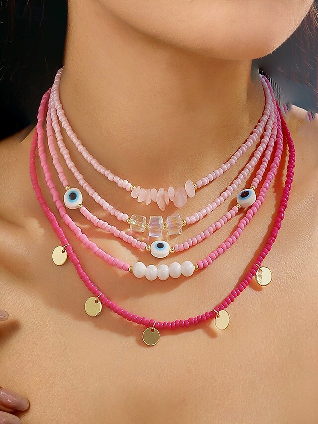 $14.99 - Women's Colorful Beaded Layered Necklace Set – Boho Evil Eye, Pearl, and Charm Accents – Adjustable Summer Jewelry for Teens and Young Women – Ideal for Beach, Festivals and Casual Wear 2025. Shop for cheap Women's Necklace online? Buy at lightinthebox.com on sale today!