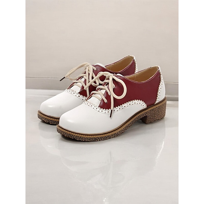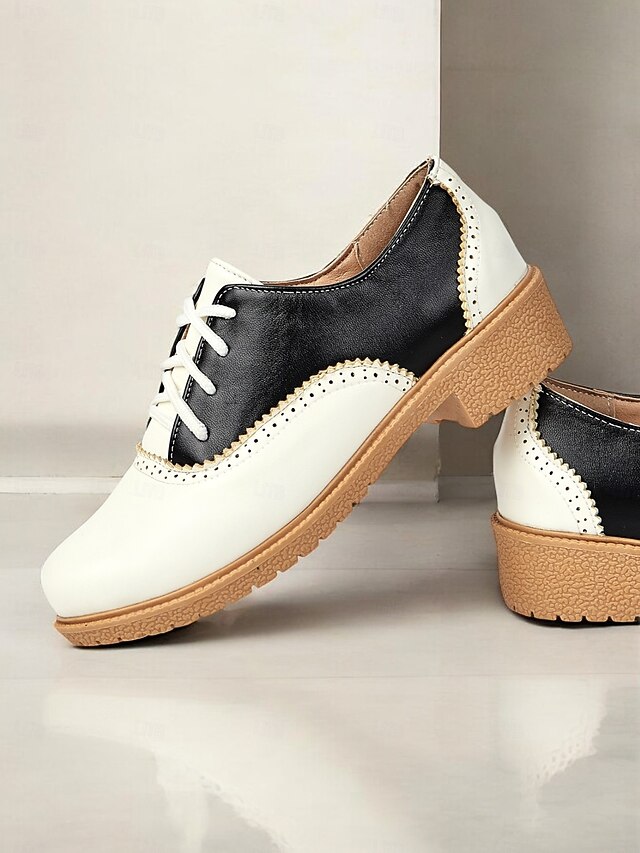 More information about Women's 1920s Retro Two-Tone Brogue Oxford Shoes, Lace-Up Vintage Flat Faux Leather Shoes for Daily Wear and Gatsby Inspired Outfits