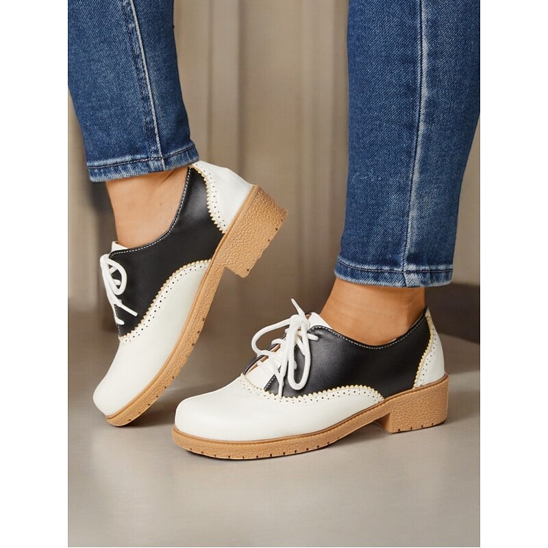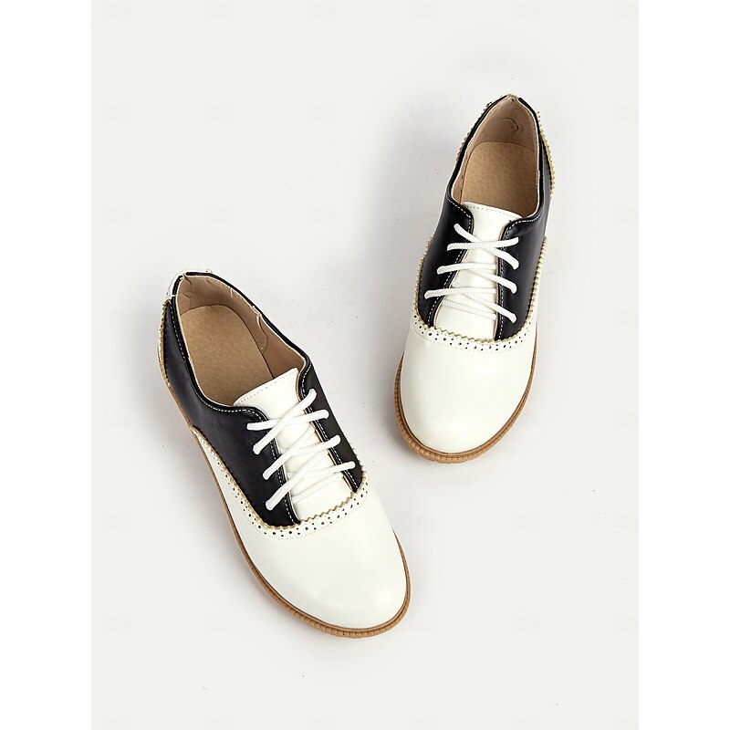 Women's 1920s Retro Two-Tone Brogue Oxford Shoes, Lace-Up Vintage Flat Faux Leather Shoes for Daily Wear and Gatsby Inspired Outfits
