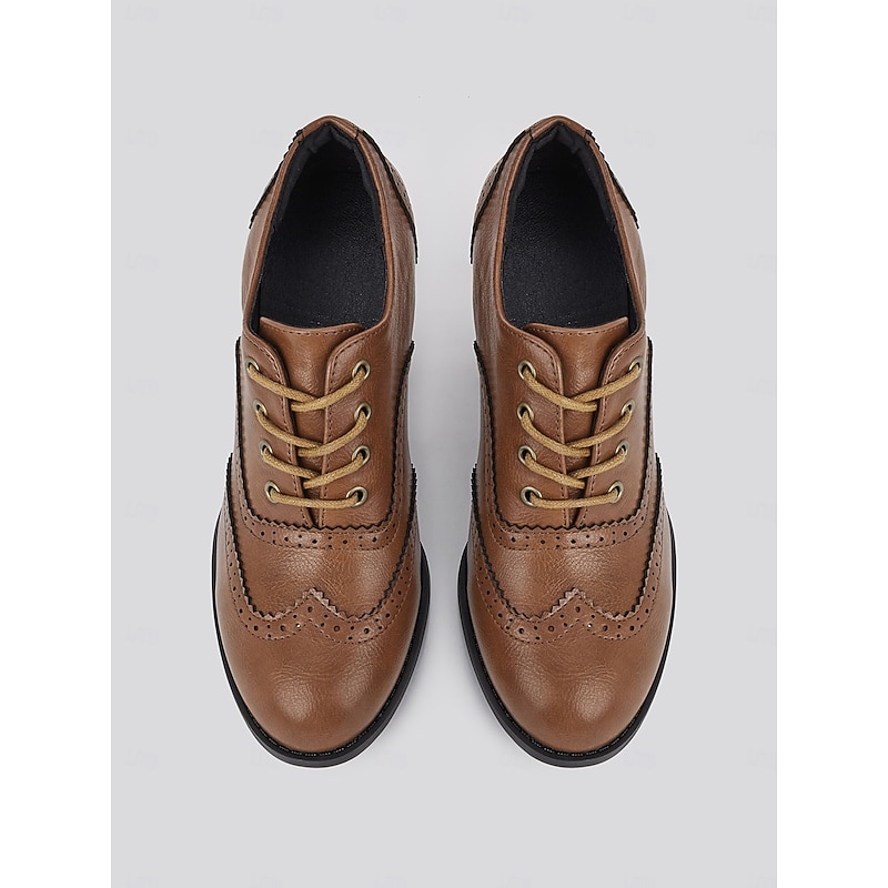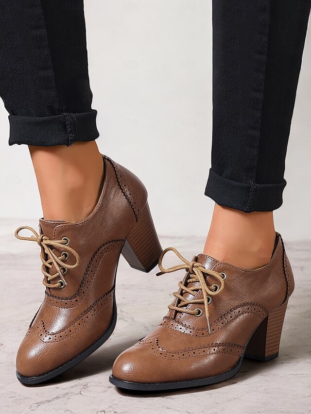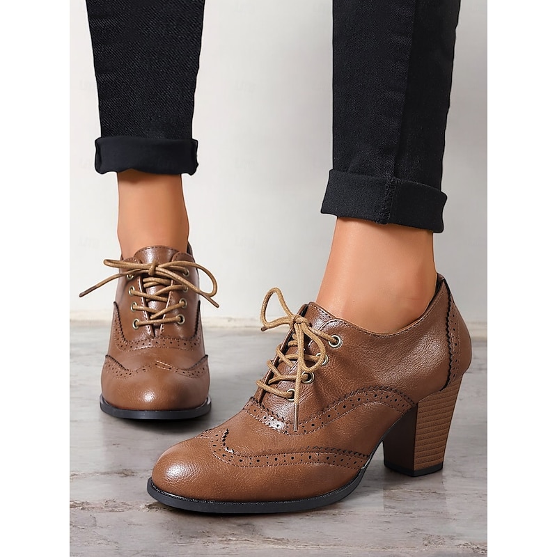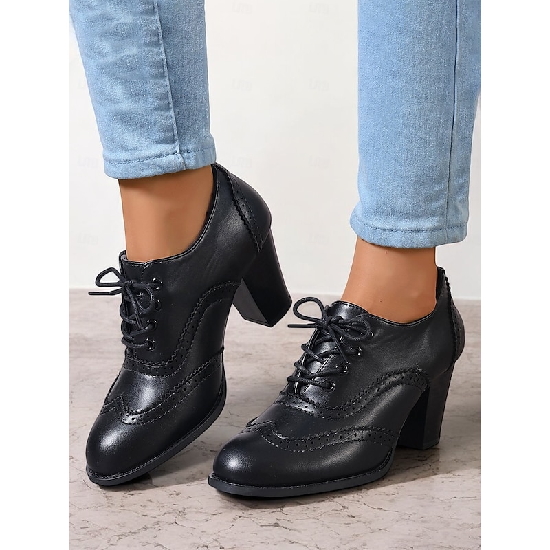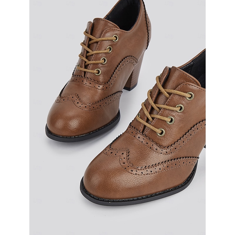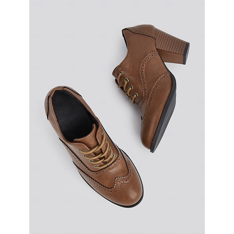 Highlights [Fabric & Material] Crafted from high-quality faux leather, these Women's Vintage Lace-Up Brogue Oxford Shoes showcase durability and timeless style. The rubber outsole provides enhanced traction for steady steps across various surfaces. [Design & Fit] Featuring a classic oxford brogue pattern with intricate perforated detailing, these shoes highlight an elegant touch, while the lace-up closure ensures a secure and customizable fit. The block heel, designed for stability, offers all-day comfort without compromising on style. [Design Highlights] These shoes boast a sophisticated round toe shape and chic chunky heel, effectively combining business and minimalism aesthetics. The lace-up front not only adds to the vintage appeal but also allows for an adjustable fit. [Occasions] Perfect for daily wear, office settings, or formal events, these shoes offer a versatile option that complements both pants and skirts. Whether for a day at work or an evening gathering, they add classic charm to any outfit. [Size Range] Available in a variety of sizes—ranging from US6 to US10.5—these shoes accommodate different foot sizes, ensuring a comfortable fit for a wide audience. Perfect for everyday use. premium materials and excellent craftsmanship ensure long-lasting durability.