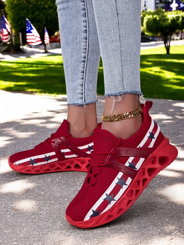 trending ! Women's Independence Day Blade Sole Sneakers - Patriotic American Flag Running Shoes for Sports & Casual Wear