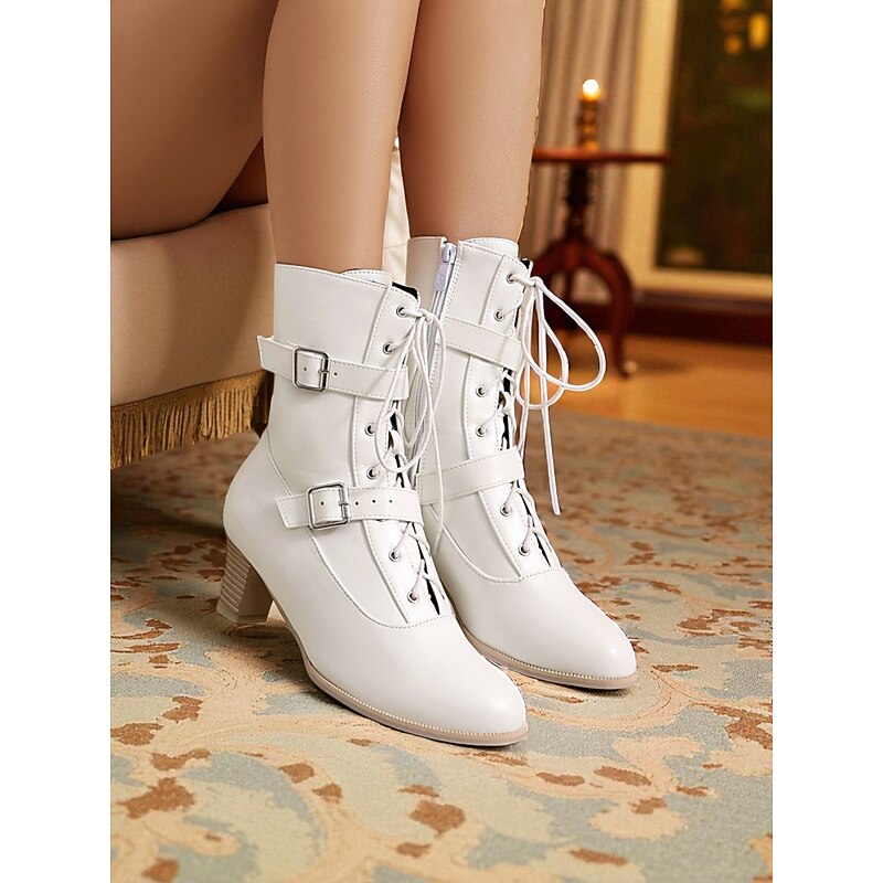 Why Choose Women's Black Faux Leather Lace-Up Ankle Boots with Double Buckle Straps and Mid-Heel, 1950s Vintage Gothic Style Booties for Cosplay, Parties & Daily Fashion Wear?
