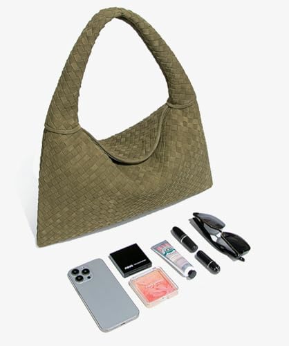 Slouchy Woven Suede Hobo Bags Women Trendy Suede Tote Bag Purse Shoulder Satchel Work Bag Top Handle Vintage Satchels Handbag