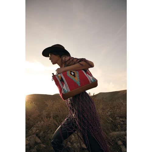 trending ! Myra Bag Shoulder Bag for Women - Western Upcycled Leather and Canvas Handbag Red