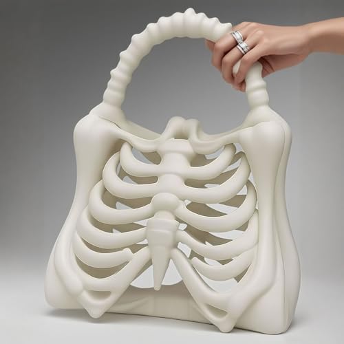 Fabric type: PlasticOrigin: ImportedClosure type: BuckleLining: PlasticUnique Skeleton Design – Eye-Catching Gothic Style: This 3D printed handbag features a striking ribcage skeleton structure with a bone-shaped handle, making it a bold fashion accessory for gothic, punk, and Halloween-inspired outfits. Perfect for those who love unusual and statement-making designs.Available in Two Sizes for Versatile Use: Choose from large (31×23×13 cm) for everyday essentials or small (23×18×10 cm) for light travel and party use. Both sizes provide practical storage space for phones, wallets, makeup, and small personal items.Durable 3D Printed Construction: Made with sturdy 3D printed material, this skeleton bag maintains its shape while remaining lightweight and comfortable to carry. The solid handle ensures a secure grip for daily wear or event styling.Perfect for Halloween, Cosplay & Gothic Fashion: A must-have accessory for themed parties, cosplay events, gothic fashion lovers, or as a spooky yet fashionable handbag for everyday use. It instantly adds a bold statement to any outfit.Unique Gift Idea for Horror & Fashion Fans: A creative and memorable gift for friends who love skeleton aesthetics, horror collectibles, or gothic fashion. Ideal for Halloween, birthdays, cosplay conventions, or as a quirky everyday bag. Perfect for everyday use. first-class materials and excellent craftsmanship ensure long-lasting durability.
