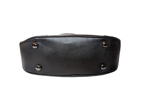 - Purse has Metal Dome Studs, Scalloped Details and Metal Feet at the Base.