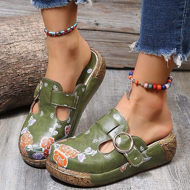 Highlights [Fabric] : Crafted from premium PU leather, these slip-on clogs offer an exquisite floral embroidered design that exudes elegance. The materials ensure durability and comfort, making them perfect for a range of seasons from spring to fall. [Fit] : Designed with a rounded toe and broad footbed, these shoes provide a comfortable and stable fit. The faux cork wedge sole elevates slightly, offering excellent support suitable for all-day wear. [Design Highlights] : Featuring a fashionable metallic buckle strap, these clogs offer an adjustable fit while enhancing the vintage charm. The decorative cutouts not only add visual interest but also increase breathability for added comfort. [Occasions] : Ideal for everyday casual outings, beach trips, and outdoor adventures. These clogs pair effortlessly with Bohemian-style outfits, making them a versatile addition to your wardrobe for various occasions. [Size] : Available in sizes 35 to 43, these clogs cater to a wide range of foot sizes, ensuring a perfect fit for all. Perfect for everyday use. first-class materials and excellent craftsmanship ensure long-lasting durability.
