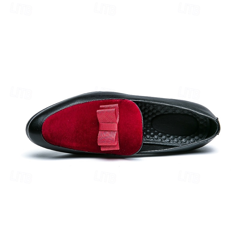 trending ! Men's Red Velvet Bow Loafers – Elegant Slip-On Party Shoes for Weddings, Dinners & Prom Nights