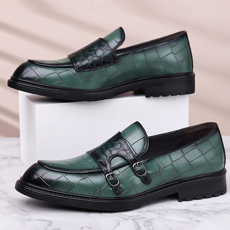 trending ! Men's Brown Faux Leather Loafers with Crocodile Pattern – Slip-On Business Casual Shoes for Office & Evening Wear