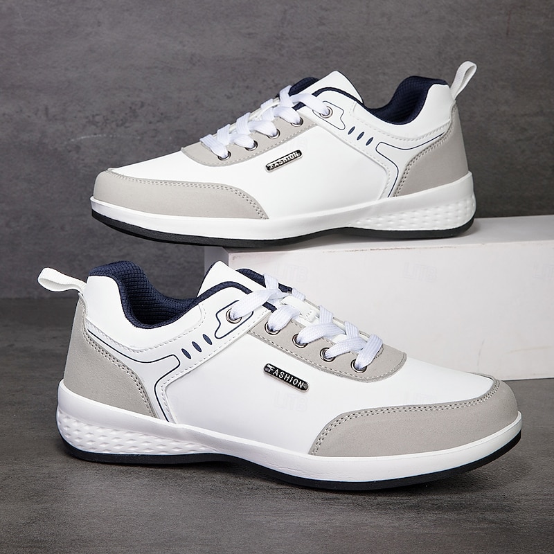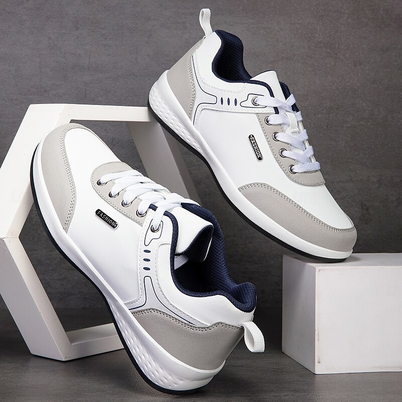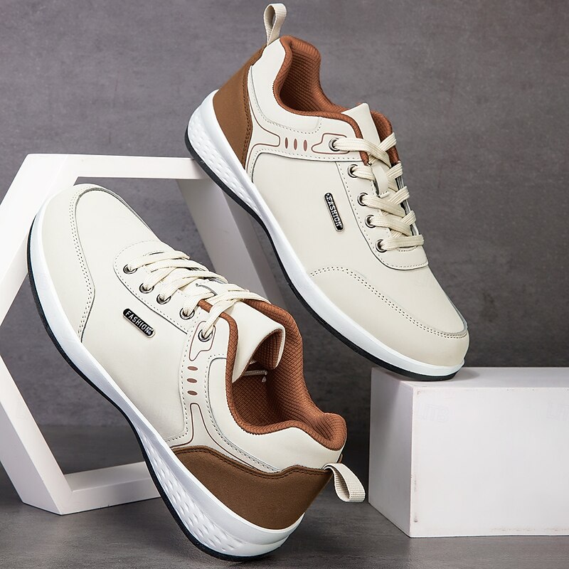 Why Choose Men's White Faux Leather Casual Sneakers with Brown Accent – Lightweight Everyday Walking Shoes for Work, Travel and Street Style Fashion?