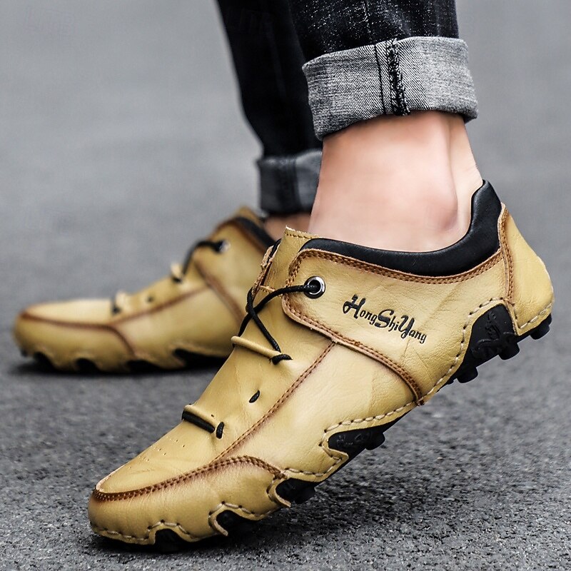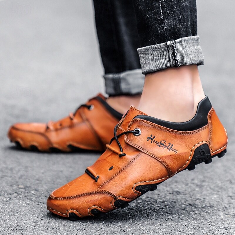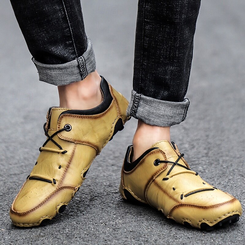 trending ! Men's Orange Lace-Up Casual Shoes, Fashion Outdoor Walking Shoes with exceptional Design for Travel, Parties and Streetwear