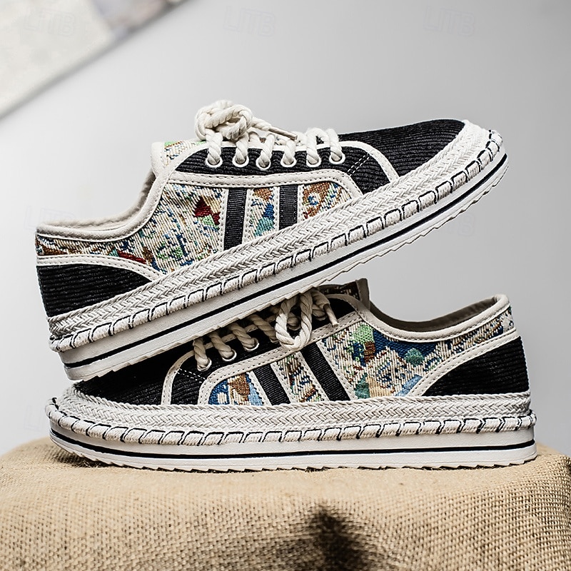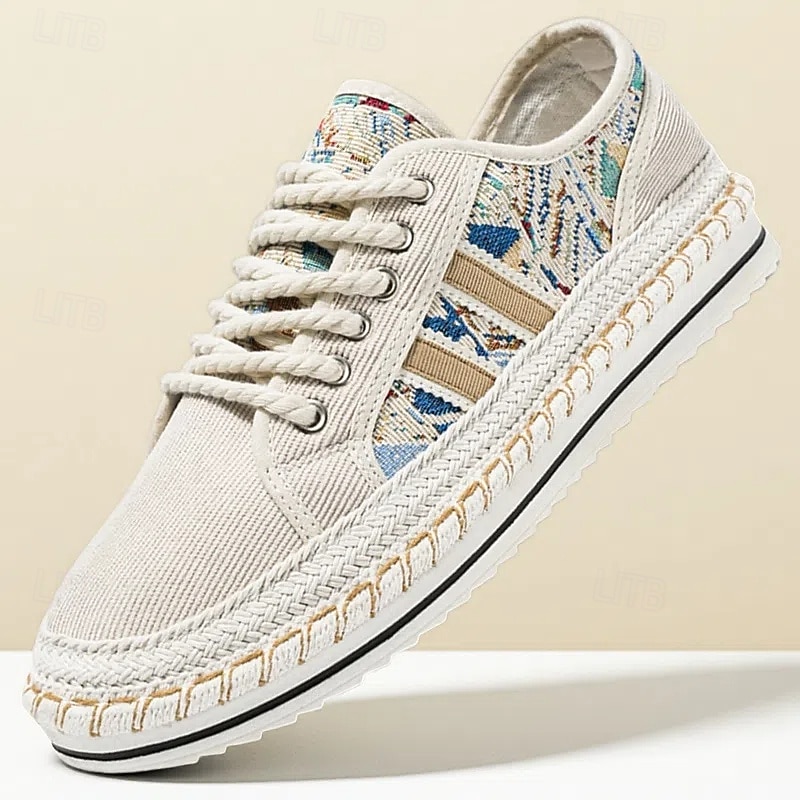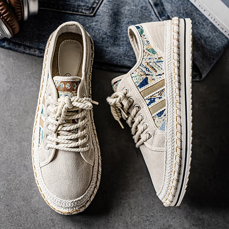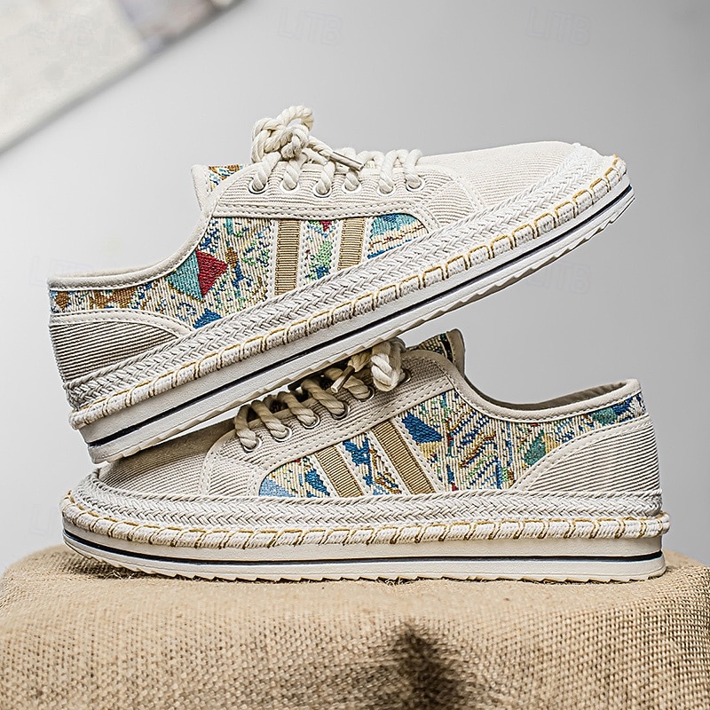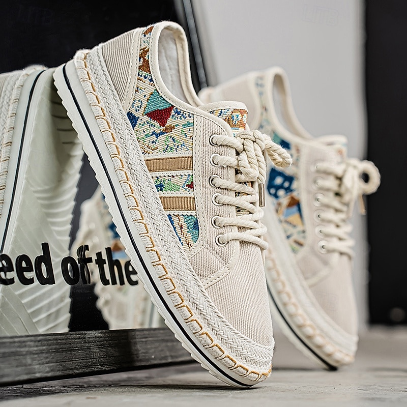 trending ! Men's Beige Walking Shoes with Colorful Woven Detailing – cushy and solid Sneakers for Casual and Travel Wear