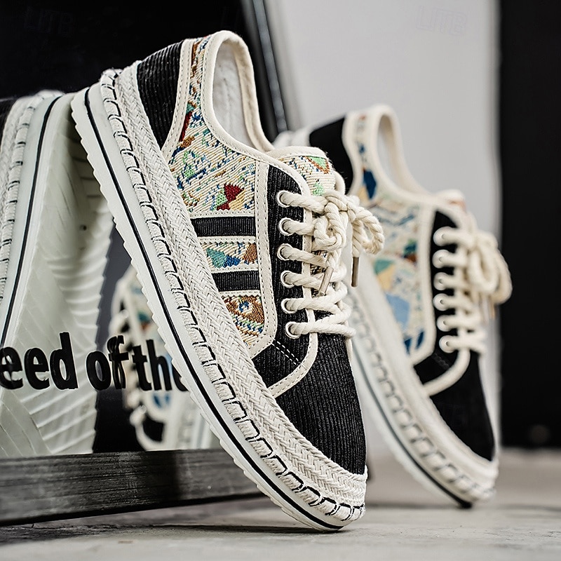 More information about Men's Beige Walking Shoes with Colorful Woven Detailing – supple and Durable Sneakers for Casual and Travel Wear