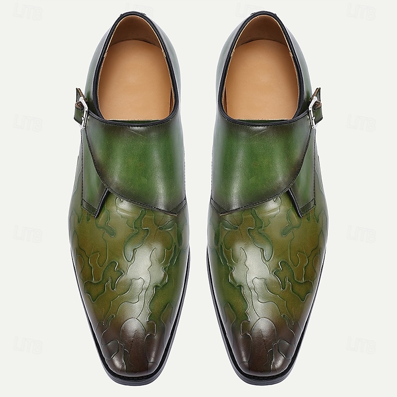 This Men's Green Leather Monk Strap Dress Shoes – Premium Cowhide, Camouflage Pattern, Elegant Formal Footwear for Weddings and Business Events combines elegant design with practical functionality. Every detail has been carefully considered to ensure you get the best possible experience. The splendid construction means this product will serve you well for years to come.