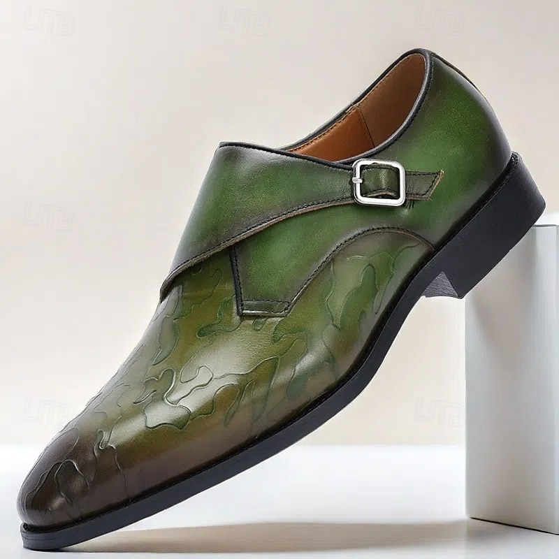 Why Choose Men's Green Leather Monk Strap Dress Shoes – Premium Cowhide, Camouflage Pattern, Elegant Formal Footwear for Weddings and Business Events?