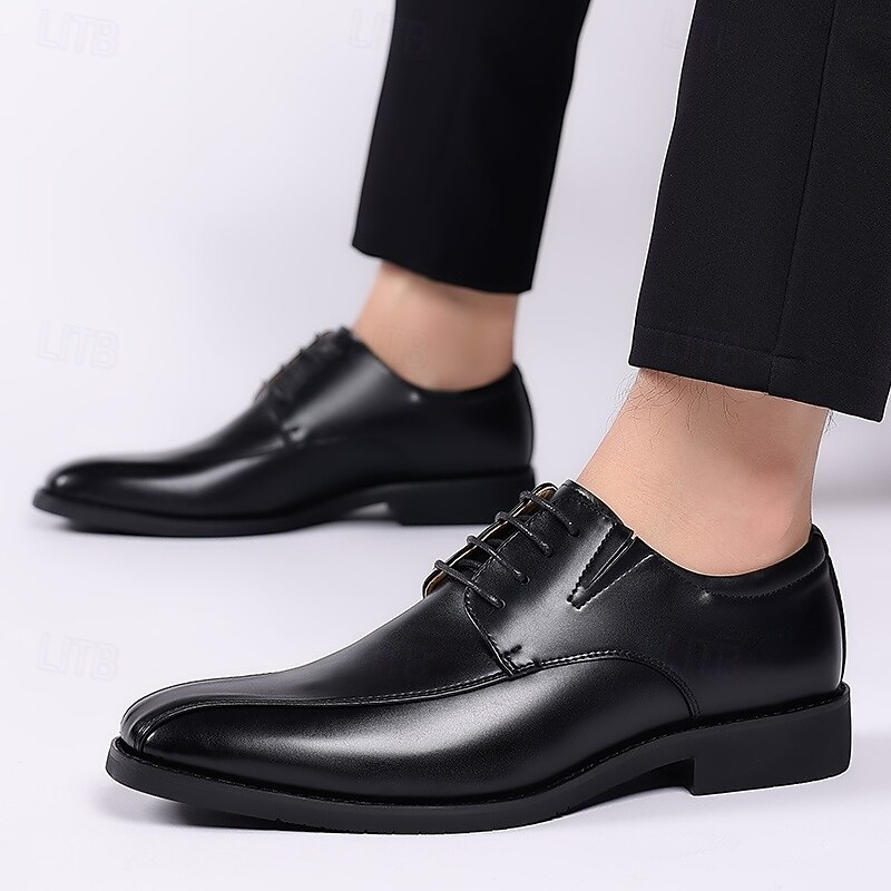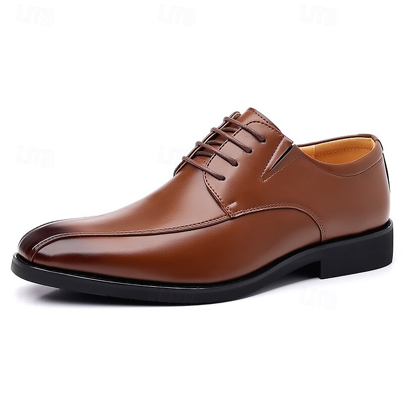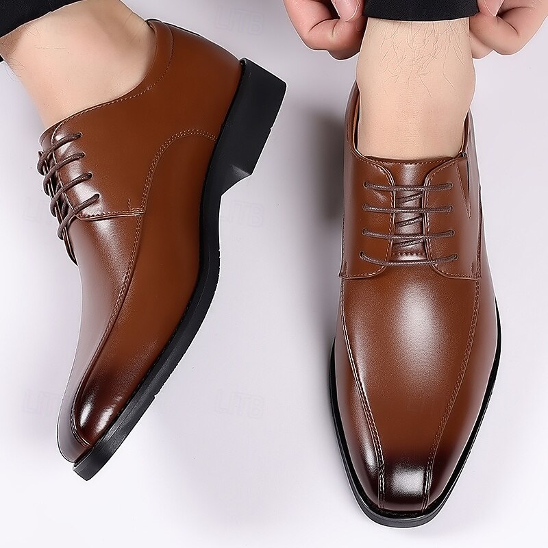 Why Choose Men's Brown Faux Leather Dress Shoes with Lace-up Design, Elegant Formal Footwear for Office, Weddings and Special Events?