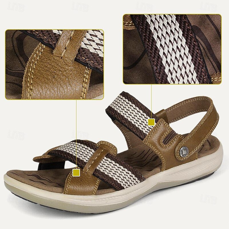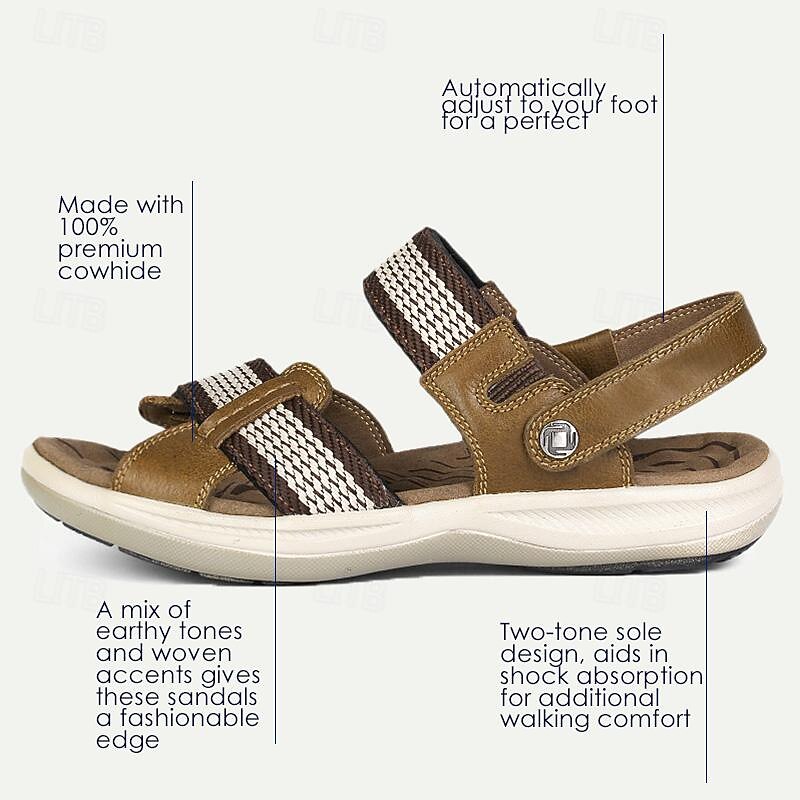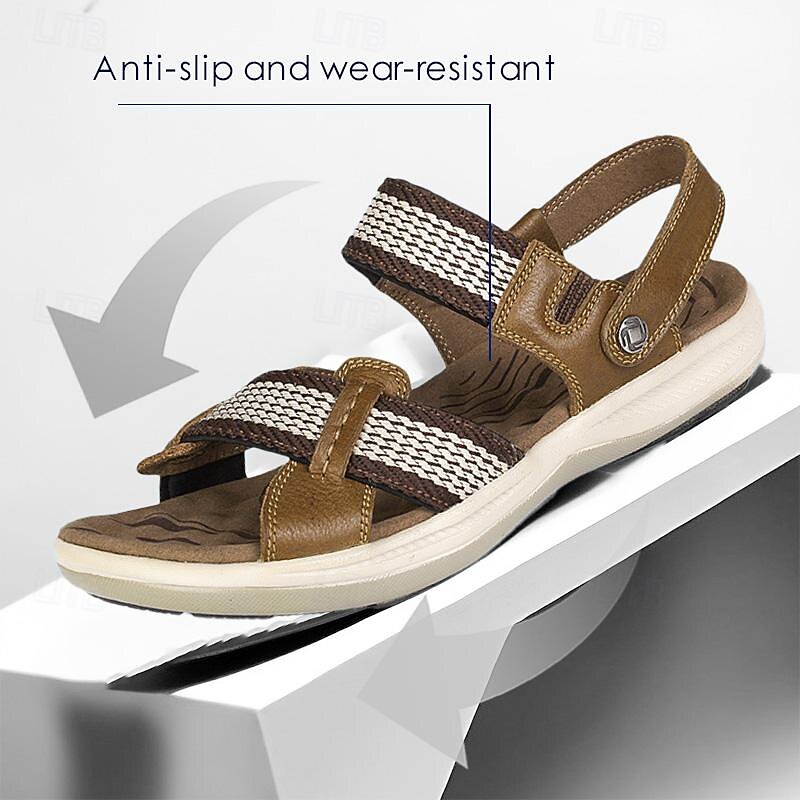 More information about Men's Sandals Sporty Sandals Leather Italian Full-Grain Cowhide Breathable smooth Slip Resistant Loafer Buckle Black Brown Khaki