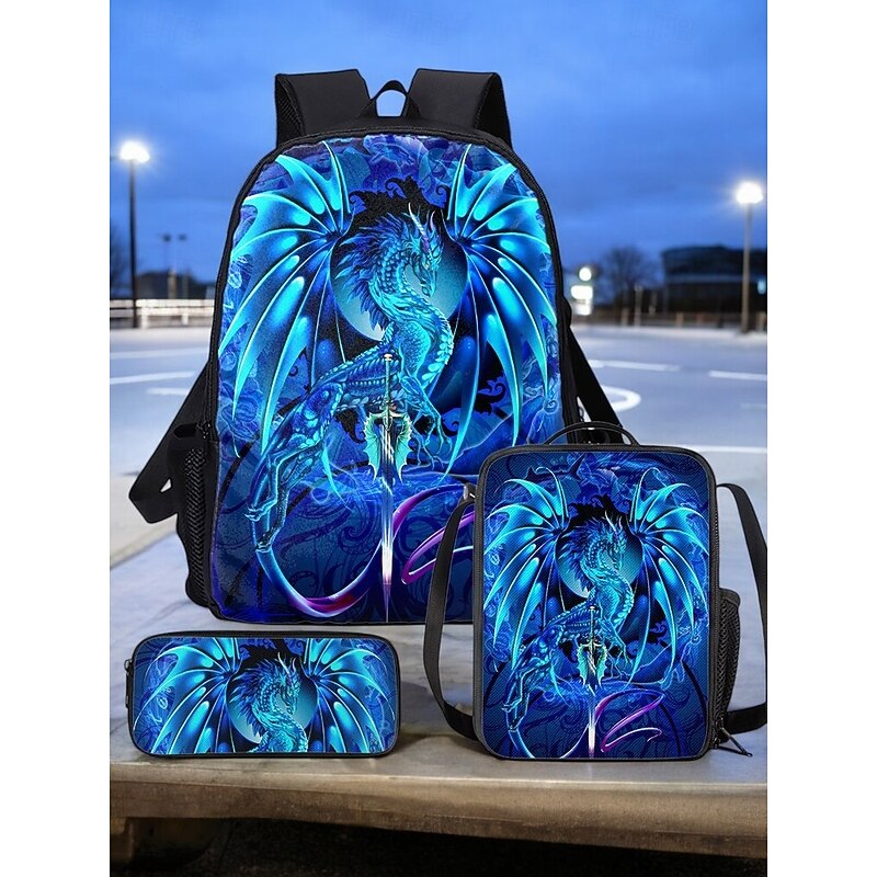 $32.99 - Boys' dragon themed three-piece backpack set, Including backpack, Cooler bag and pencil case, Bright blue design, perfect for school, Travel and everyday use, Ruth Thompson 2025. Shop for cheap Kids & Teen Backpacks online? Buy at lightinthebox.com on sale today!